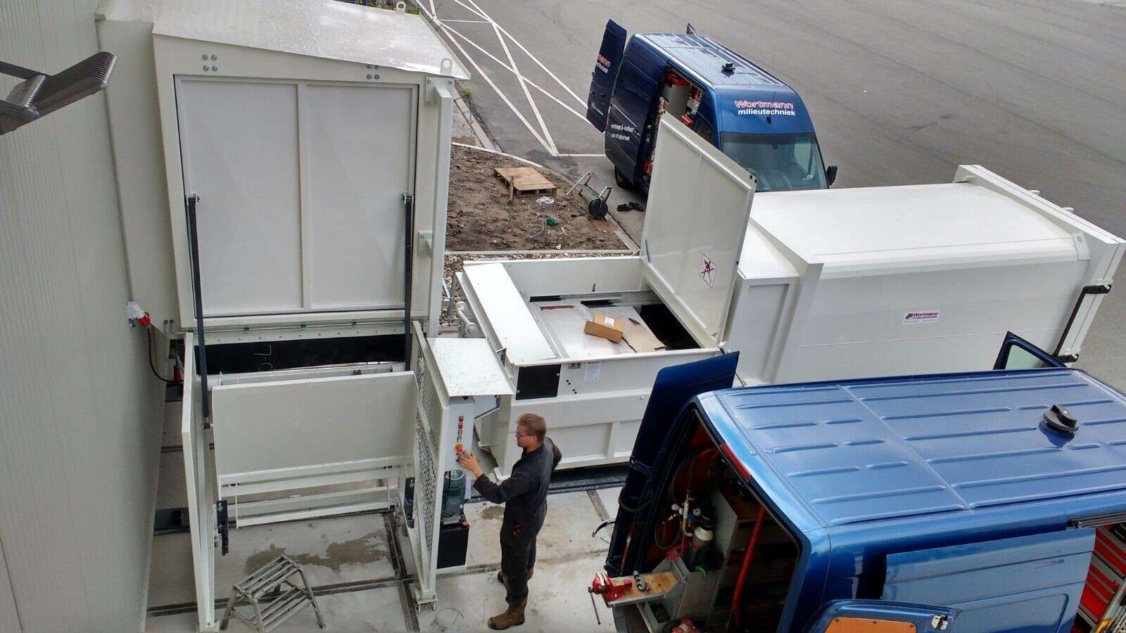 Bij een kaasfabrikant plaatsten wij onlangs een compleet-installatie bestaande uit een waskantelaar , 2 zelfpersende containers, 4 hefkantelinstallaties (2 stuks binnen en 2 buiten), 2 wandtrechters en 2 sets lange containergeleiderails. De persen kunnen d.m.v. de kantelaren worden bevuld. Nadat één van de hefkantelaars gestart wordt, trekt het persblok weer terug om de vulopening vrij […]